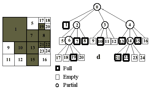 Def. Multi-resolution representation in 2D (quadtrees) or 3D (octrees).